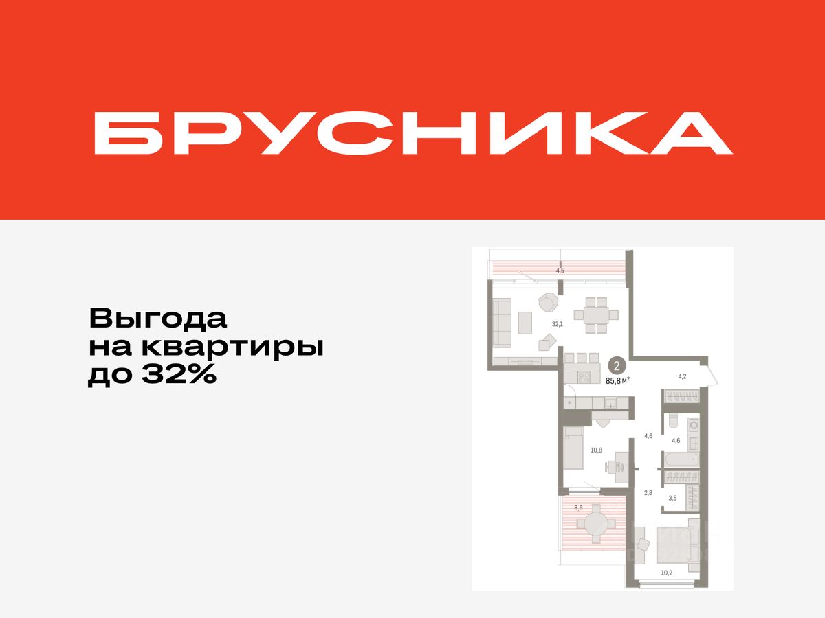 Двухкомнатная квартира с предчистовой отделкой в ЖК "Зарека" на 8 этаже. Общая площадь: 85.75 кв.м., площадь просторной кухни-гостиной: 32.1 кв.м. Высота потолков 2.7 м.