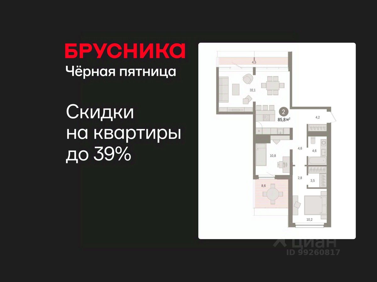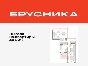 Квартира с кухней-гостиной и двумя спальнями в жилом районе "Зарека". Особенности планировки: вид во двор, разнесённые спальни, предчистовая отделка, терраса, терраса на крыше.