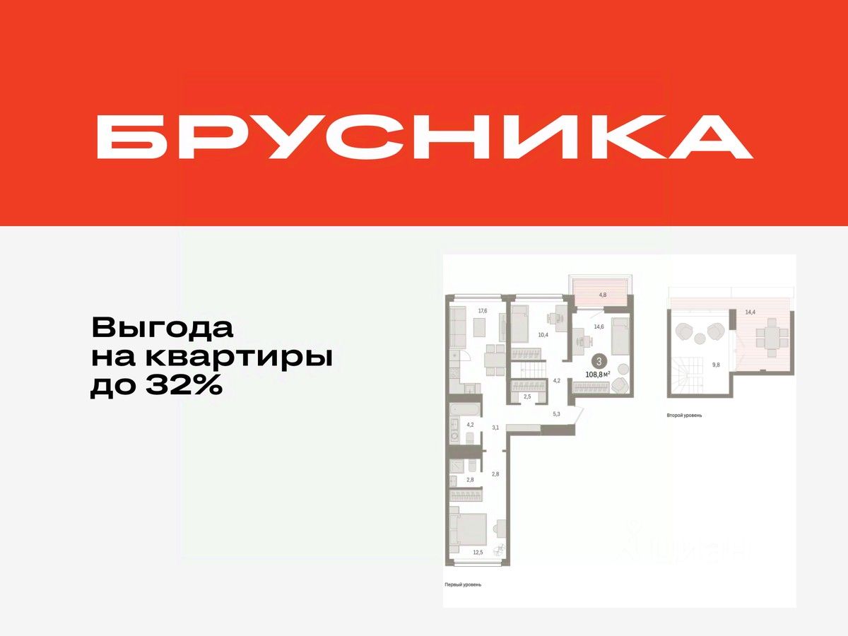 Двухуровневая квартира с кухней-гостиной и тремя спальнями в жилом районе "Зарека". Особенности планировки: двухуровневая, вид во двор, разнесённые спальни, предчистовая отделка, летняя кухня на крыше, балкон, терраса на крыше.