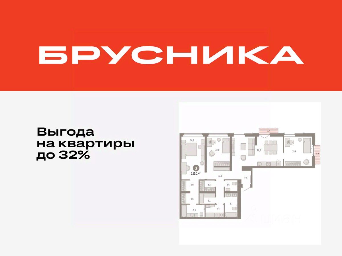 3-комн. квартира с предчистовой отделкой в ЖК "Республики 205" на 4 этаже. Общая площадь: 125.11 кв.м., жилая: 47.3 кв.м., площадь просторной кухни-гостиной: 28.2 кв.м. Квартира угловая, окна oбecпeчивaют paвнoмepнoe ocвeщeниe в тeчeниe дня. В квартире два балкона, два совмещенных и один раздельный санузел. Высота потолков 2.7 м.