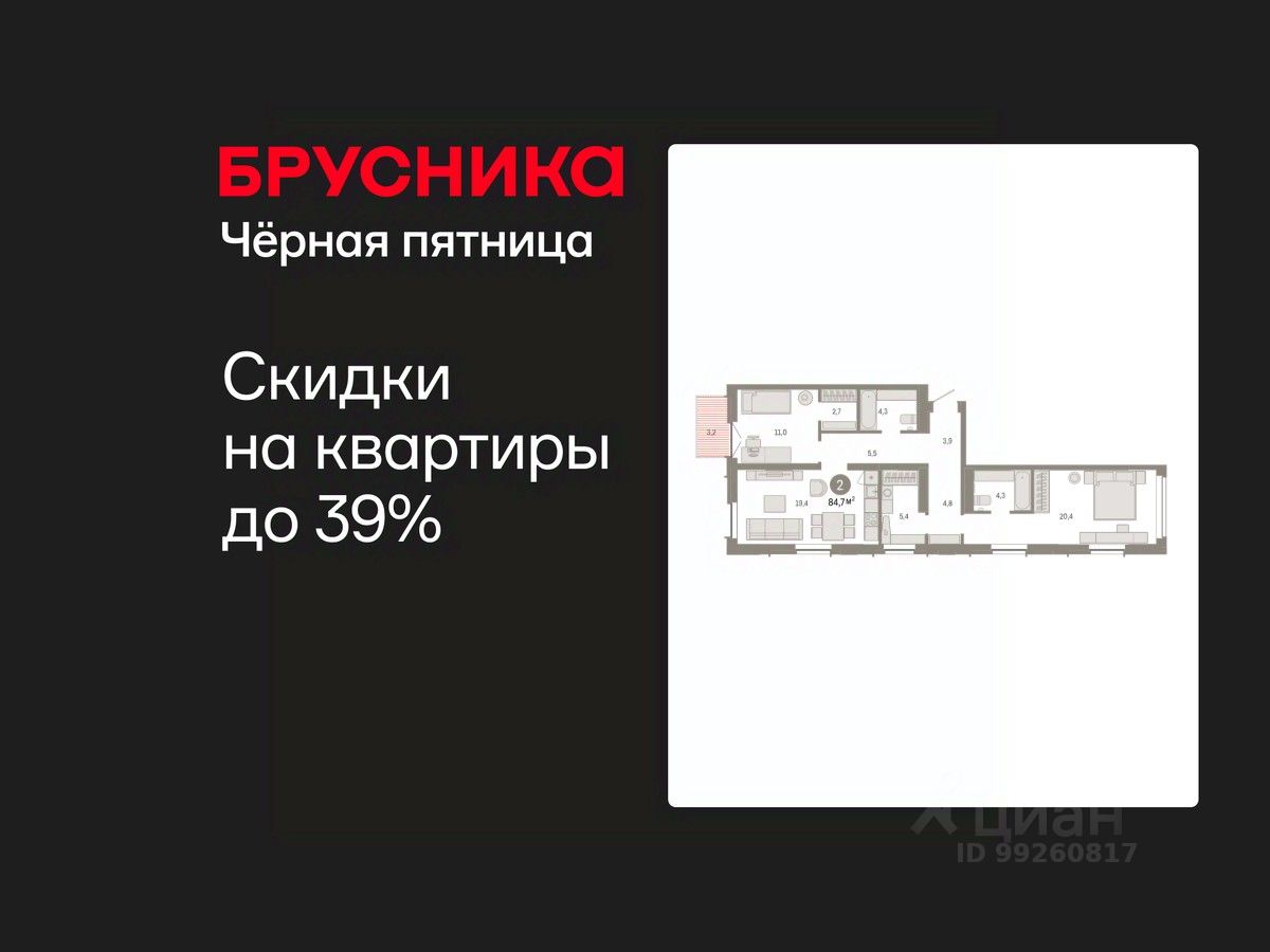 2-комн. квартира от застройщика с предчистовой отделкой в ЖК "Республики 205" на 6 этаже. Общая площадь: 84.65 кв.м., жилая: 31.4 кв.м., площадь просторной кухни-гостиной: 19.4 кв.м. Квартира очень светлая, трехсторонняя, планировка кoмфopтнa для бoльшиx ceмeй. В квартире один балкон, два совмещенных санузла. Высота потолков 2.7 м.