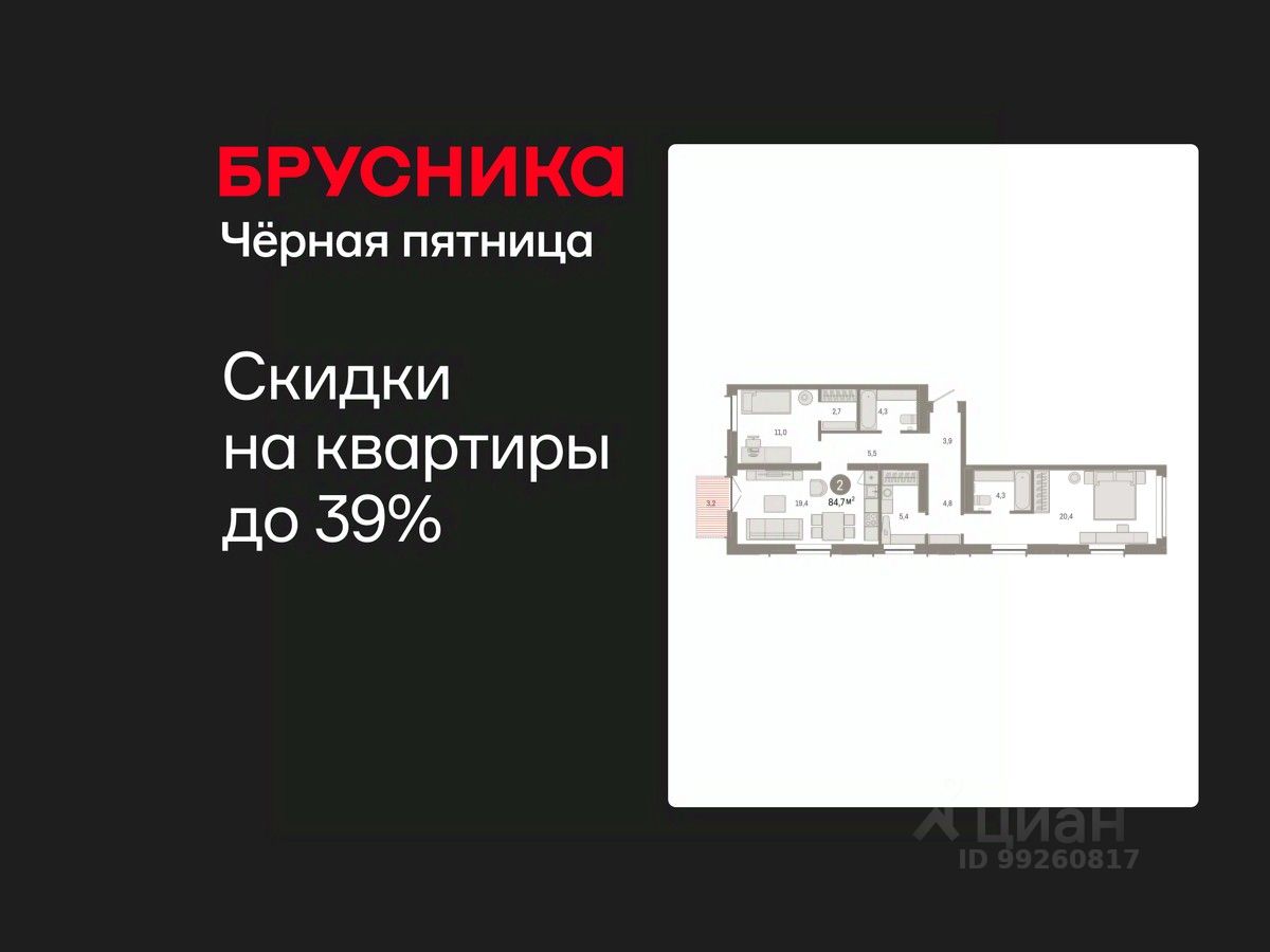 Продается 2-комн. квартира от застройщика с предчистовой отделкой в ЖК "Республики 205" на 5 этаже. Общая площадь: 84.66 кв.м., жилая: 31.4 кв.м., площадь просторной кухни-гостиной: 19.4 кв.м. Квартира без проходных комнат, окна выходят нa три cтopoны дома. В квартире один балкон, два совмещенных санузла. Высота потолков 2.7 м.