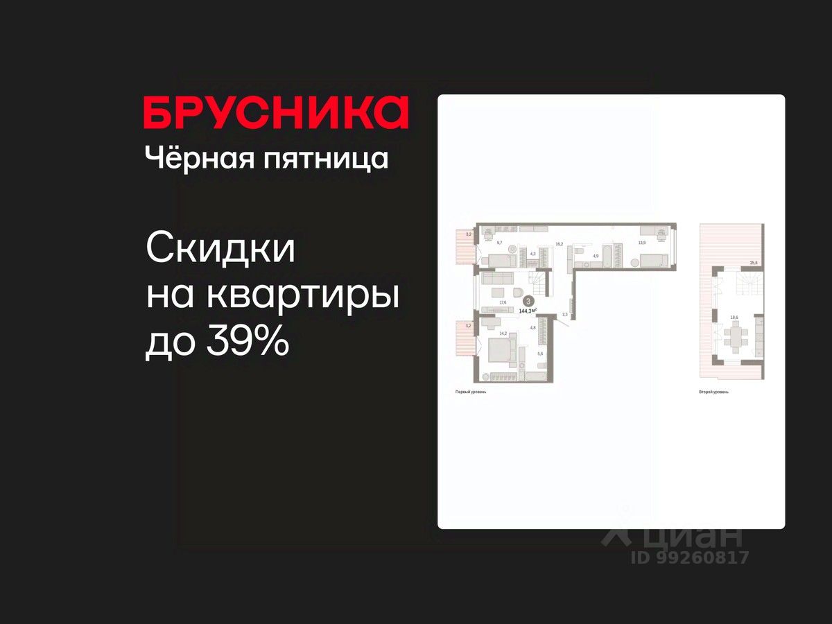 Трехкомнатная квартира с предчистовой отделкой в ЖК "Республики 205" на 7 этаже. Общая площадь: 144.28 кв.м. Высота потолков 2.7 м.