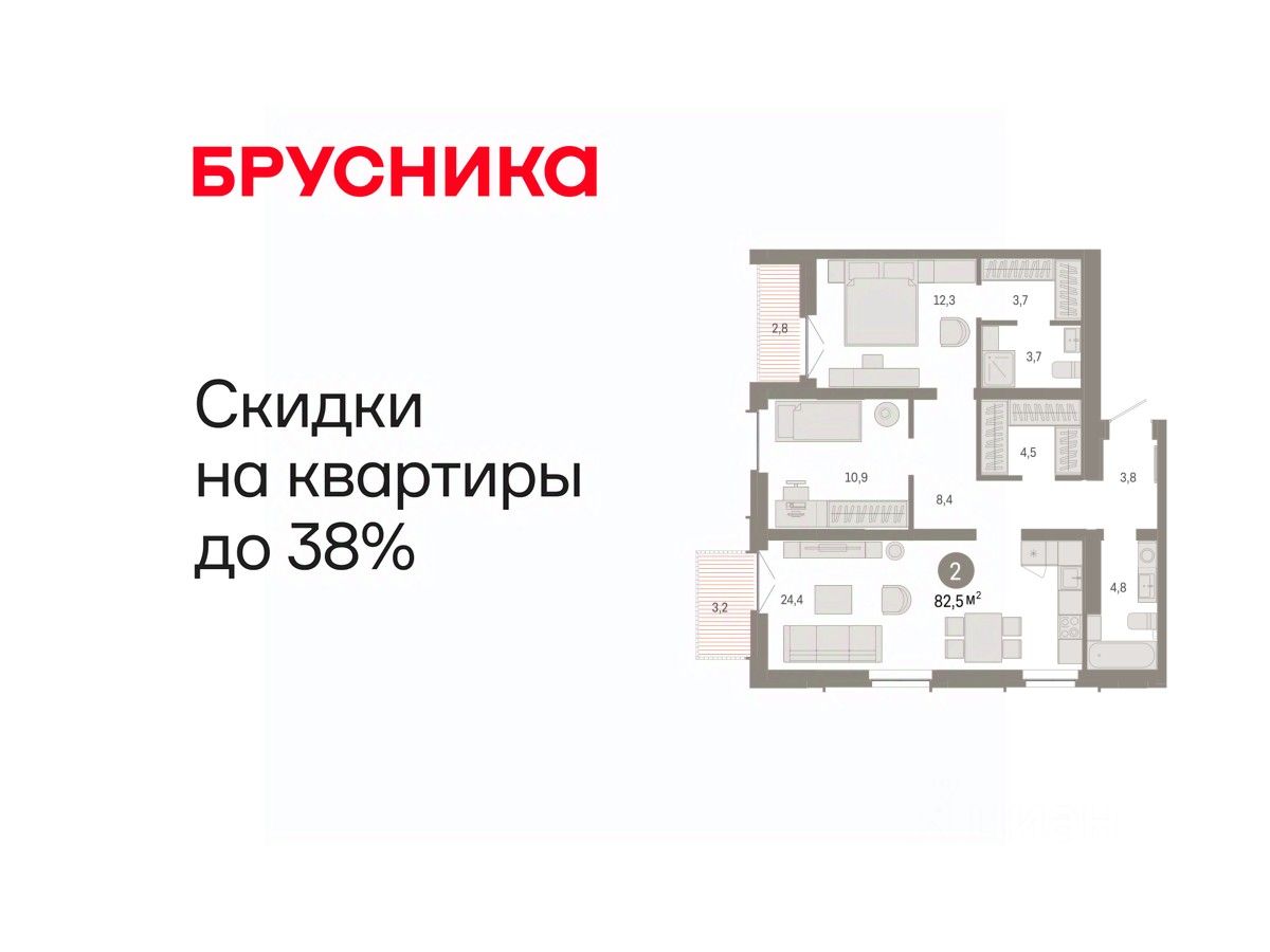 Просторная 2-комн. квартира с предчистовой отделкой в ЖК "Республики 205" на 15 этаже. Общая площадь: 82.53 кв.м., жилая: 23.2 кв.м., площадь просторной кухни-гостиной: 24.4 кв.м. Квартира угловая, идеально подойдет любителям тишины и панорамных видов. В квартире один балкон и одна лоджия, два совмещенных санузла. Высота потолков 2.7 м.