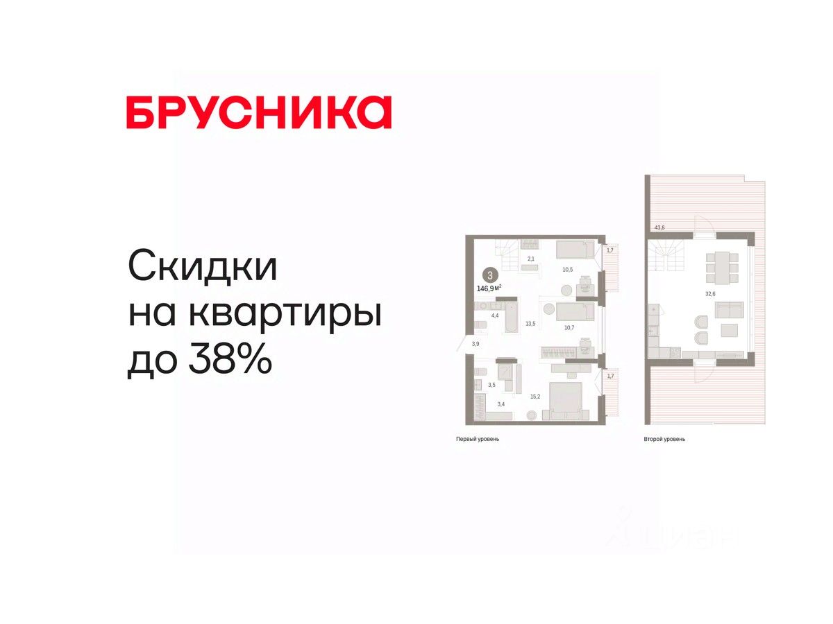 3-комн. квартира с предчистовой отделкой в ЖК "Республики 205" на 7 этаже. Общая площадь: 146.9 кв.м. Высота потолков 2.7 м.