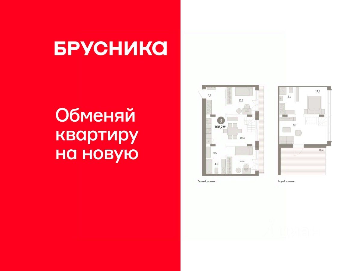 3-комн. квартира с предчистовой отделкой в ЖК "Республики 205" на 7 этаже. Общая площадь: 108.16 кв.м. Высота потолков 2.7 м.