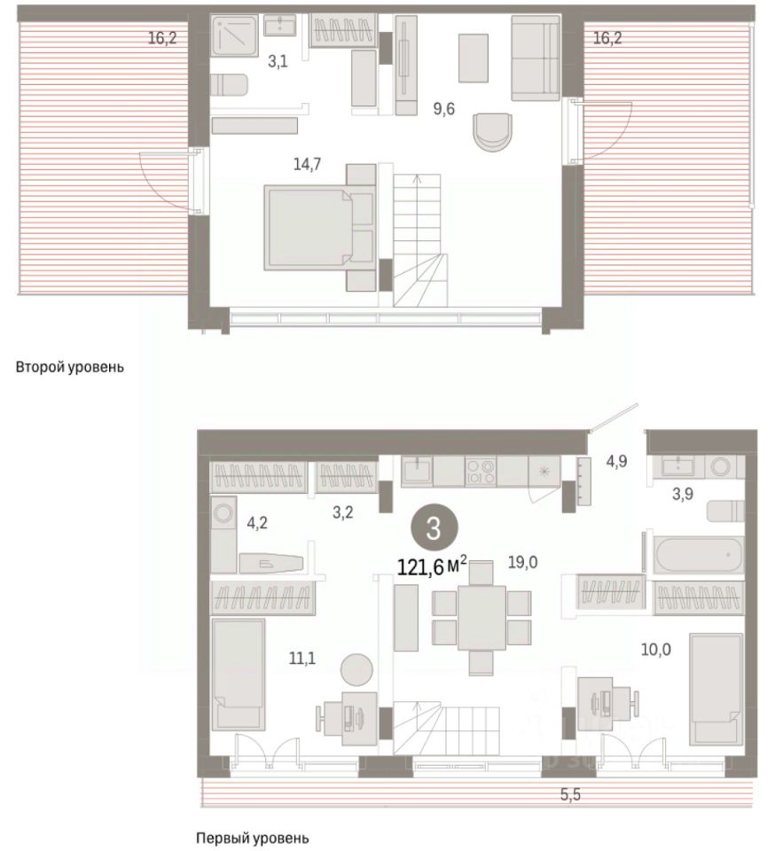 3-комн. квартира от застройщика с предчистовой отделкой в ЖК "Республики 205" на 7 этаже. Общая площадь: 121.62 кв.м. Высота потолков 2.7 м.