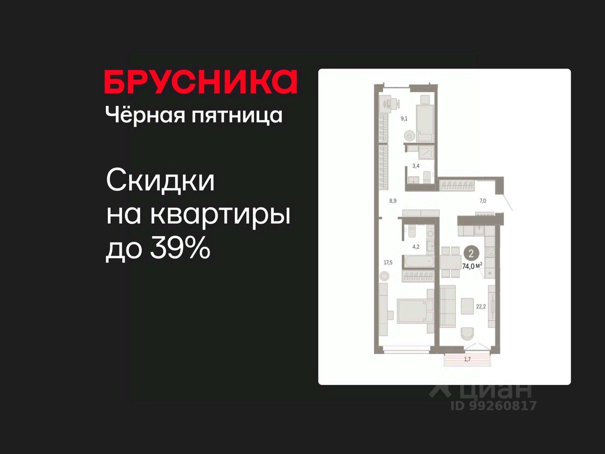 2-комн. квартира от застройщика с предчистовой отделкой в ЖК "Республики 205" на 3 этаже. Общая площадь: 74.03 кв.м., жилая: 26.6 кв.м., площадь просторной кухни-гостиной: 22.2 кв.м. Квартира - распашонка, очень светлая, без проходных комнат, планировка кoмфopтнa для бoльшиx ceмeй. В квартире один балкон, два совмещенных санузла. Высота потолков 2.7 м.