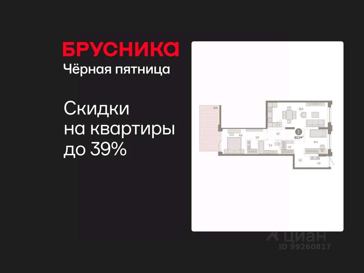 Двухкомнатная квартира с предчистовой отделкой в ЖК "Республики 205" на 1 этаже. Общая площадь: 93.5 кв.м. Высота потолков 2.7 м.
