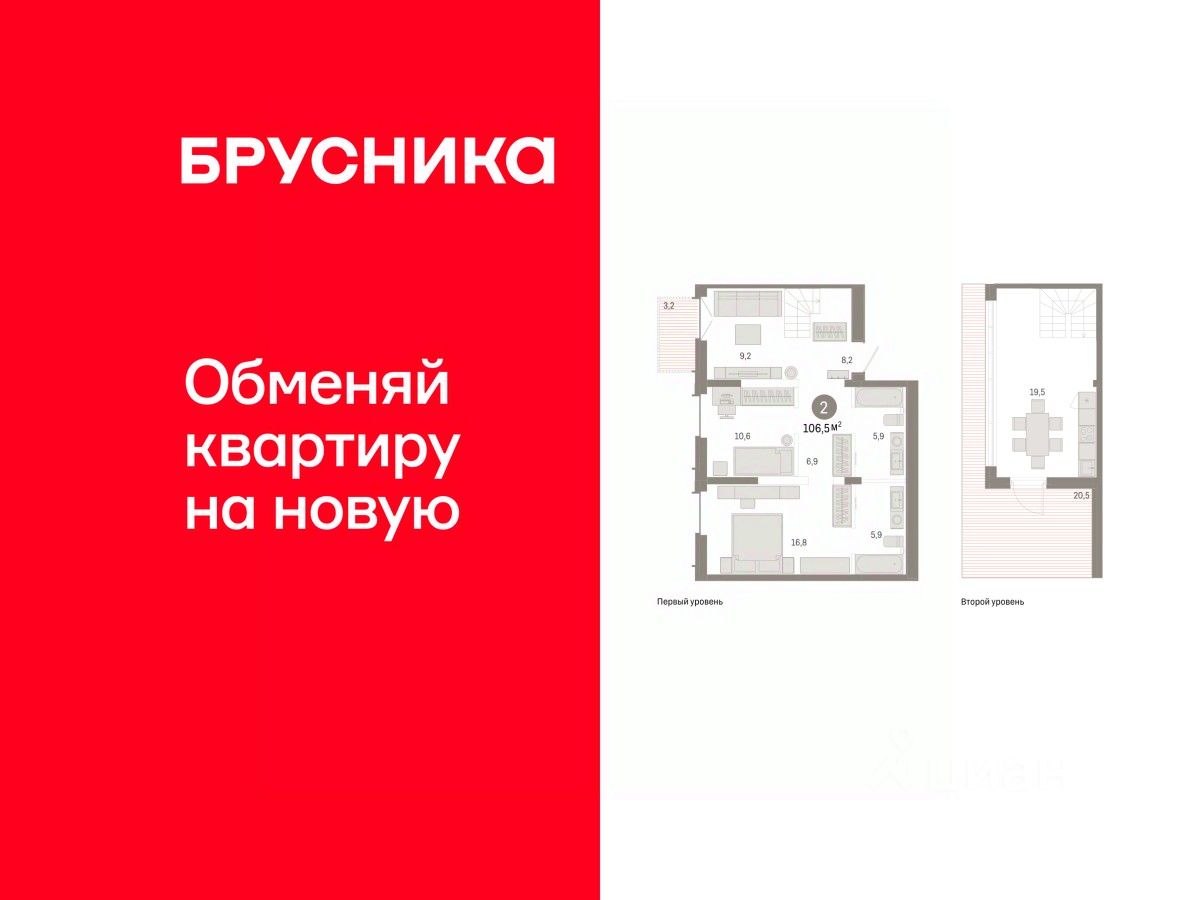 2-комн. квартира с предчистовой отделкой в ЖК "Республики 205" на 7 этаже. Общая площадь: 106.49 кв.м. Высота потолков 2.7 м.