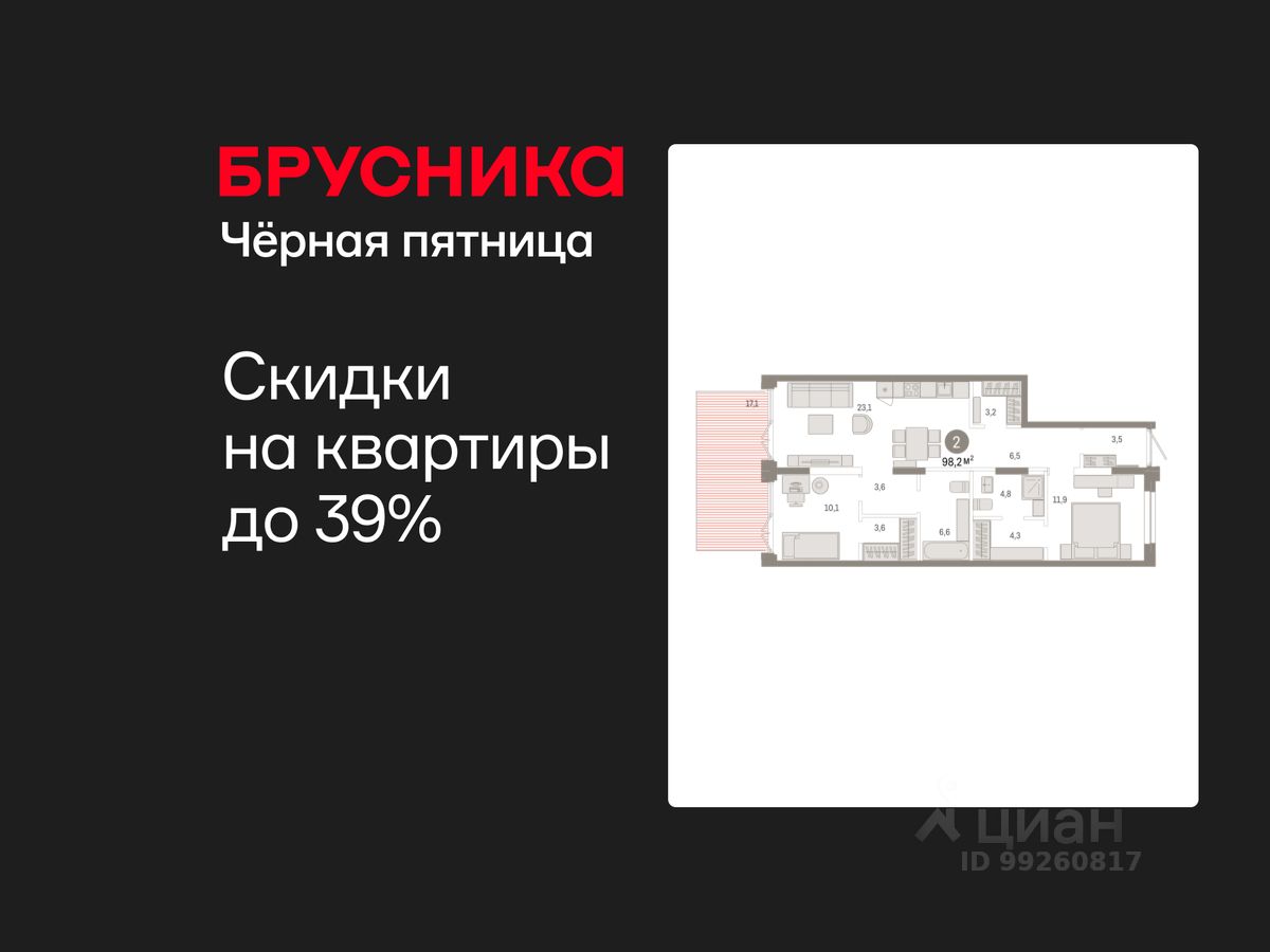 2-комн. квартира с предчистовой отделкой в ЖК "Республики 205" на 1 этаже. Общая площадь: 98.17 кв.м. Высота потолков 2.7 м.
