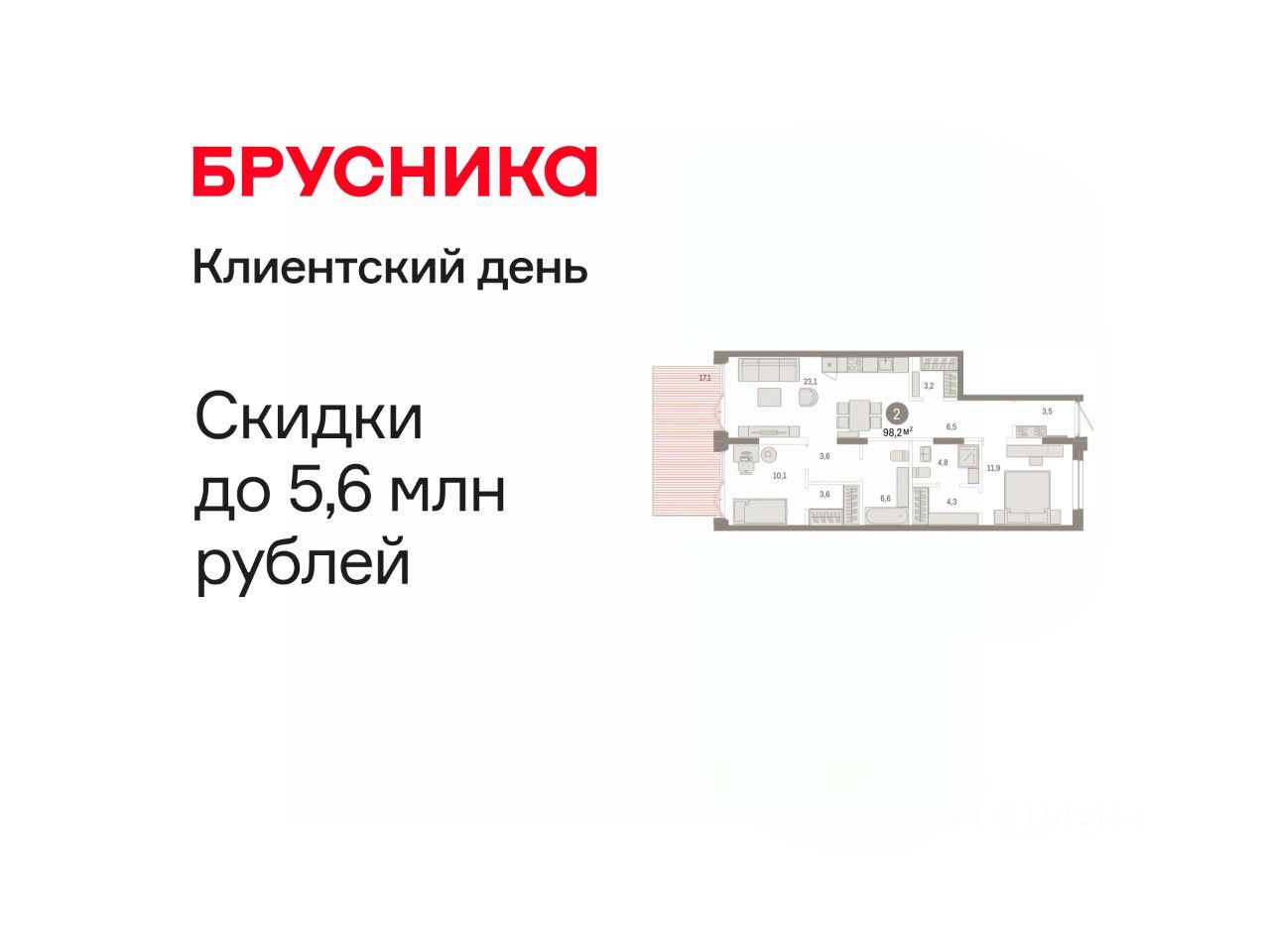 Просторная 2-комн. квартира с предчистовой отделкой в ЖК "Республики 205" на 1 этаже. Общая площадь: 98.17 кв.м. Высота потолков 2.7 м.
