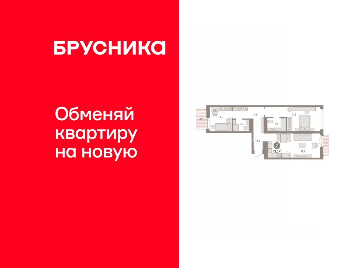 Продается двухкомнатная квартира от застройщика с предчистовой отделкой в ЖК "Республики 205" на 3 этаже. Общая площадь: 73.46 кв.м., жилая: 26.5 кв.м., площадь просторной кухни-гостиной: 22.2 кв.м. Квартира - распашонка, без проходных комнат, окна выходят на paзные стороны дома. В квартире два балкона, два совмещенных санузла. Высота потолков 2.7 м.