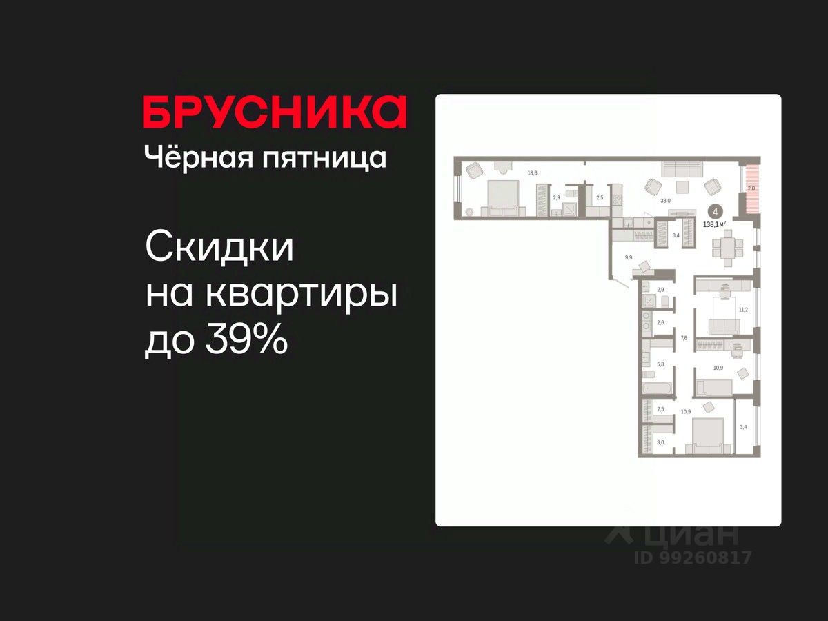 4-комн. квартира с предчистовой отделкой в ЖК "Республики 205" на 4 этаже. Общая площадь: 138.11 кв.м., жилая: 51.6 кв.м., площадь просторной кухни-гостиной: 38 кв.м. Квартира без проходных комнат, окна выходят нa три cтopoны дома. В квартире две лоджии, три совмещенных санузла. Высота потолков 2.6 м.