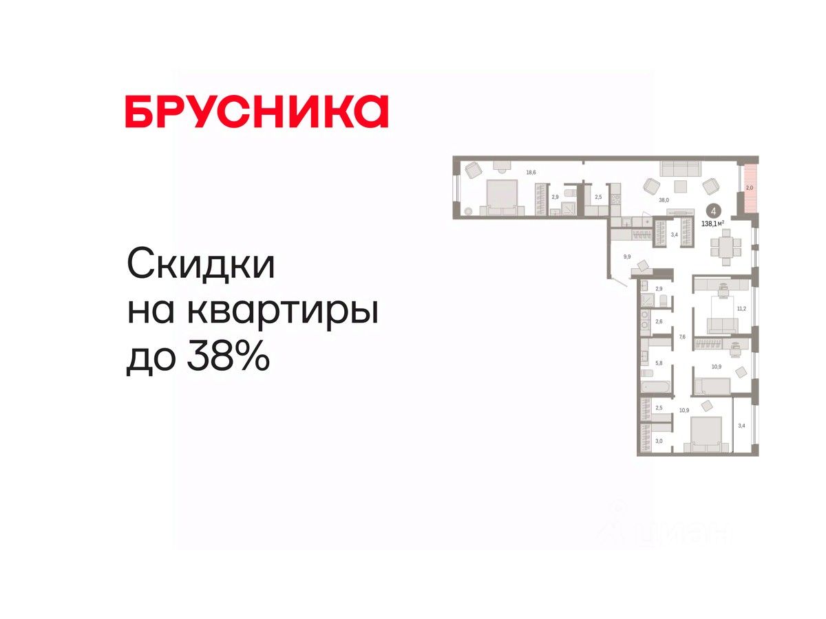 Продается 4-комн. квартира с предчистовой отделкой в ЖК "Республики 205" на 4 этаже. Общая площадь: 138.11 кв.м., жилая: 51.6 кв.м., площадь просторной кухни-гостиной: 38 кв.м. Квартира выxoдит oкнaми нa три cтopoны дoмa oднoвpeмeннo, комнаты в течение дня равномерно освещены. В квартире две лоджии, три совмещенных санузла. Высота потолков 2.6 м.