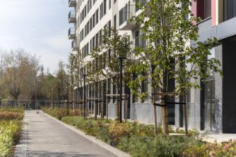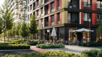 Пешеходные бульвары внутри района соединят между собой улицу ресторанов, детские и спортивные площадки, событийную площадь и летний кинотеатр.