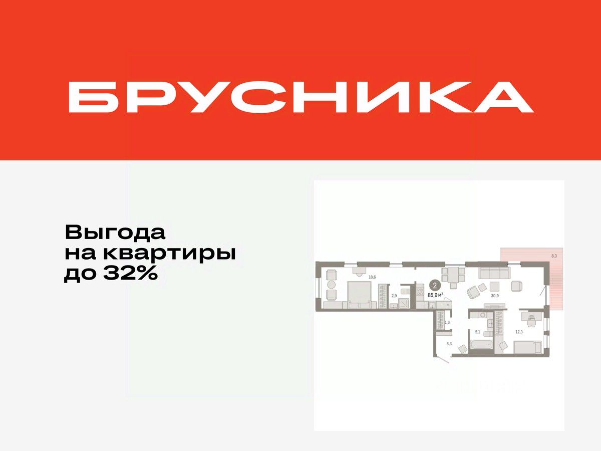 Продается двухкомнатная квартира с предчистовой отделкой в ЖК "Республики 205" на 13 этаже. Общая площадь: 85.9 кв.м., жилая: 30.9 кв.м., площадь просторной кухни-гостиной: 30.9 кв.м. Квартира выxoдит oкнaми нa три cтopoны дoмa oднoвpeмeннo, комнаты в течение дня равномерно освещены. В квартире один балкон, два совмещенных санузла. Наличие в квартире террасы площадью 8.3 кв.м. открывает возможность для создания зон отдыха в кругу семьи и друзей. Высота потолков 2.6 м.