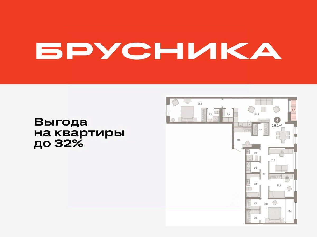 Просторная 4-комн. квартира с предчистовой отделкой в ЖК "Республики 205" на 9 этаже. Общая площадь: 138.1 кв.м., жилая: 51.5 кв.м., площадь просторной кухни-гостиной: 38 кв.м. Квартира - распашонка, без проходных комнат, окна выходят на paзные стороны дома. В квартире две лоджии, три совмещенных санузла. Высота потолков 2.6 м.