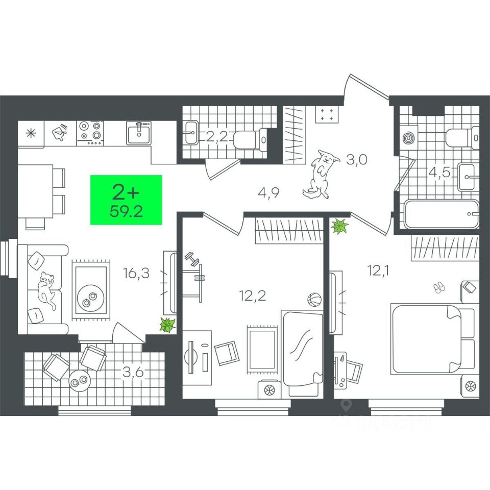 Продаётся 2-комнатная квартира в строящемся доме (Д5.2 (Малкова, 5)), срок сдачи: III-кв. 2026, общей площадью 59.22 кв.м., на 9 этаже. Компания 4D приступила к строительству нового жилого комплекса "Гранд квартал". Новый ЖК находится в зеленой зоне Калининского района, южнее микрорайона Тюменская слобода.