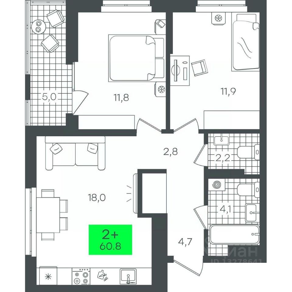 Продаётся 2-комнатная квартира в строящемся доме (3-В7.1 (Малкова, 17)), срок сдачи: III-кв. 2026, общей площадью 63.42 кв.м., на 14 этаже. Компания 4D приступила к строительству нового жилого комплекса "Гранд квартал". Новый ЖК находится в зеленой зоне Калининского района, южнее микрорайона Тюменская слобода.