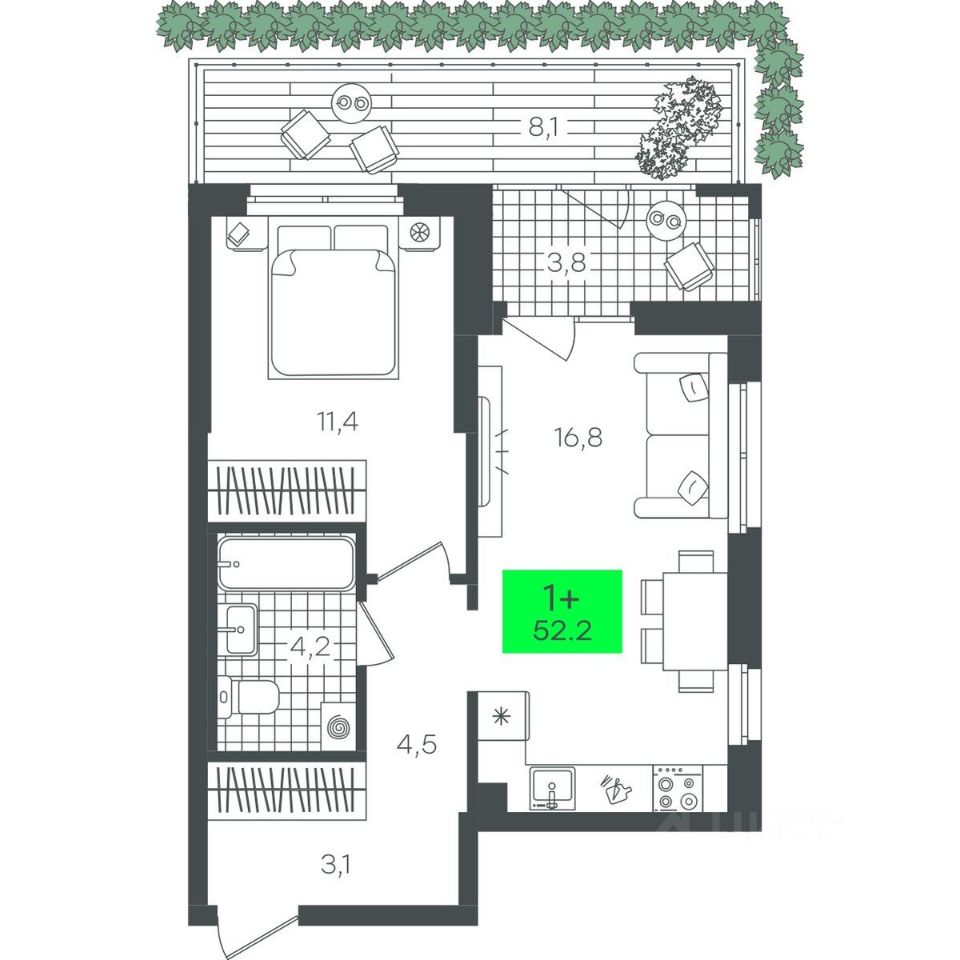 Продаётся 1-комнатная квартира в строящемся доме (В5.1 (Малкова, 19)), срок сдачи: III-кв. 2026, общей площадью 52.2 кв.м., на 1 этаже. Компания 4D приступила к строительству нового жилого комплекса "Гранд квартал". Новый ЖК находится в зеленой зоне Калининского района, южнее микрорайона Тюменская слобода.