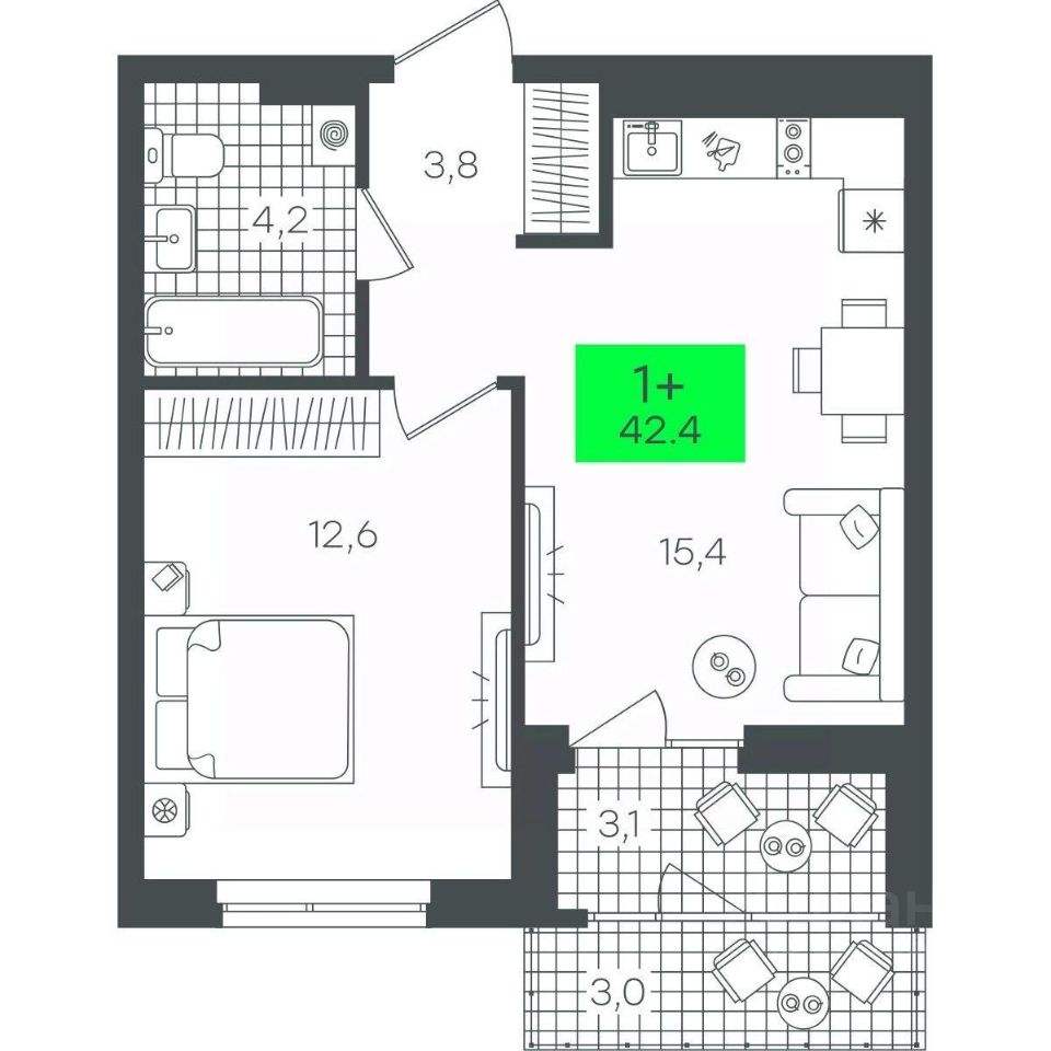 Продаётся 1-комнатная квартира в строящемся доме (3-В7.3 (Малкова, 17)), срок сдачи: III-кв. 2026, общей площадью 44.97 кв.м., на 8 этаже. Компания 4D приступила к строительству нового жилого комплекса "Гранд квартал". Новый ЖК находится в зеленой зоне Калининского района, южнее микрорайона Тюменская слобода.