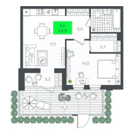 Продаётся 1-комнатная квартира в строящемся доме (Д5.2 (Малкова, 5)), срок сдачи: III-кв. 2026, общей площадью 63.09 кв.м., на 1 этаже. Компания 4D приступила к строительству нового жилого комплекса "Гранд квартал". Новый ЖК находится в зеленой зоне Калининского района, южнее микрорайона Тюменская слобода.