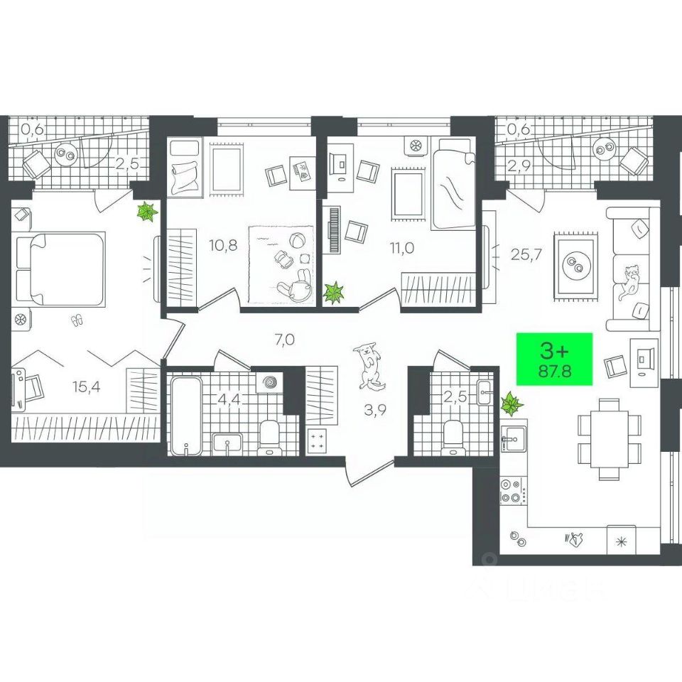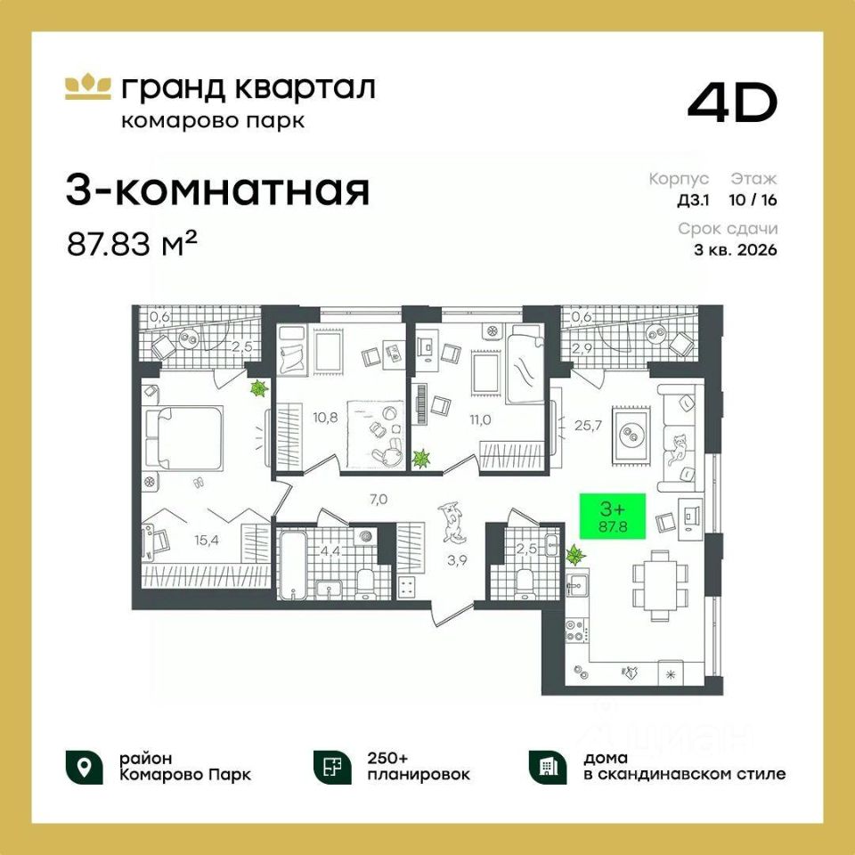 Продаётся 3-комнатная квартира в строящемся доме (1-Д3.1 (Глебова, 10)), срок сдачи: III-кв. 2026, общей площадью 87.83 кв.м., на 10 этаже. Компания 4D приступила к строительству нового жилого комплекса "Гранд квартал". Новый ЖК находится в зеленой зоне Калининского района, южнее микрорайона Тюменская слобода.