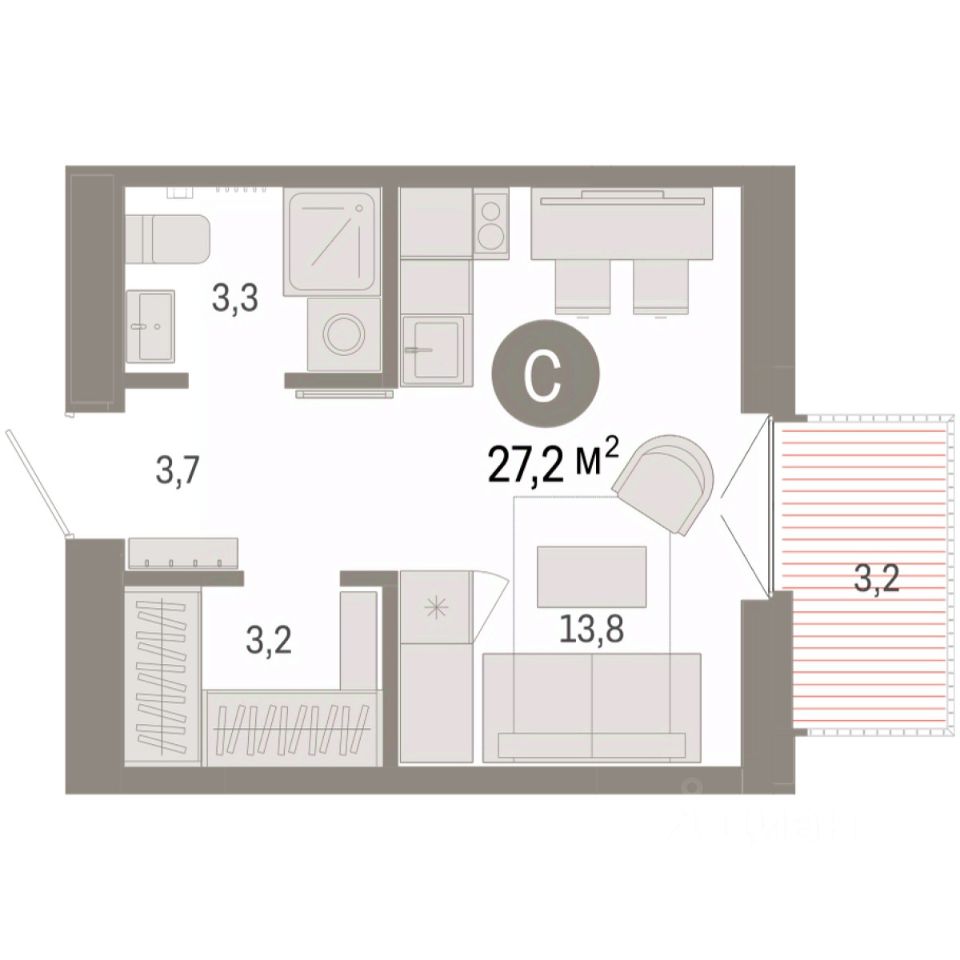 Общая площадь27,19 м²