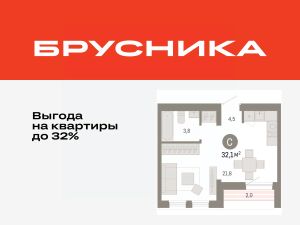 1-комн. студия с предчистовой отделкой в ЖК "Республики 205" на 9 этаже. Общая площадь: 32.1 кв.м., площадь гостиной 21.8 кв.м., из которых 5 кв.м. выделено под кухонную зону. Все окна выходят на одну сторону. В квартире одна лоджия, один совмещенный санузел. Высота потолков 2.6 м.