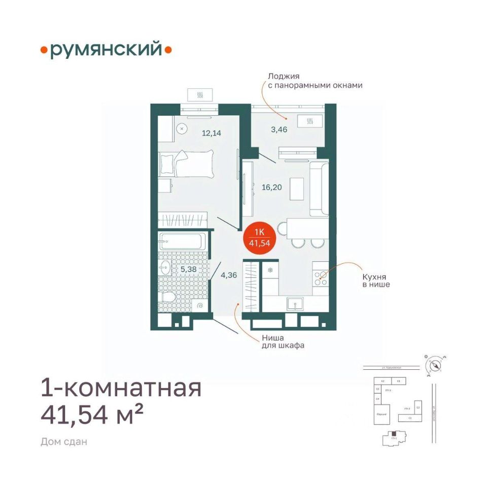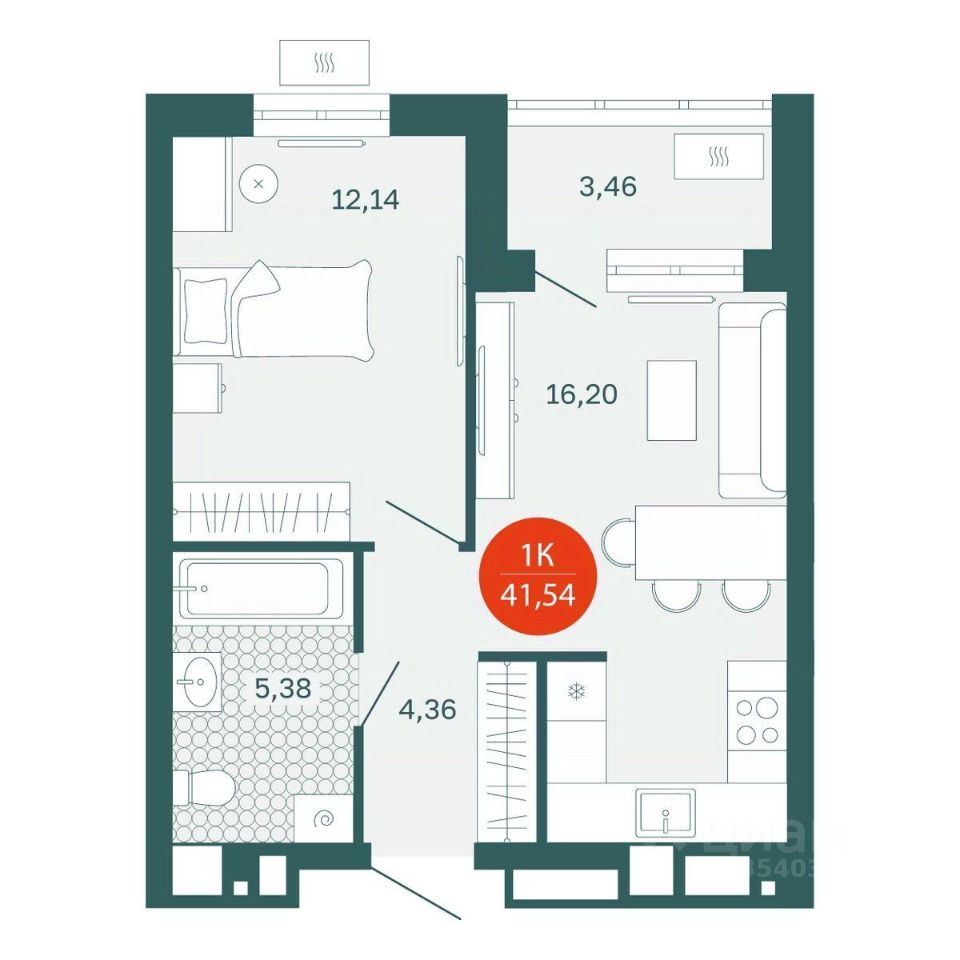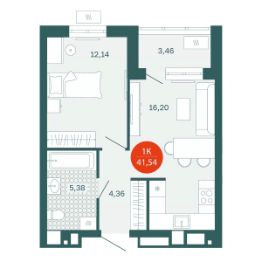 Общая площадь41,54 м²