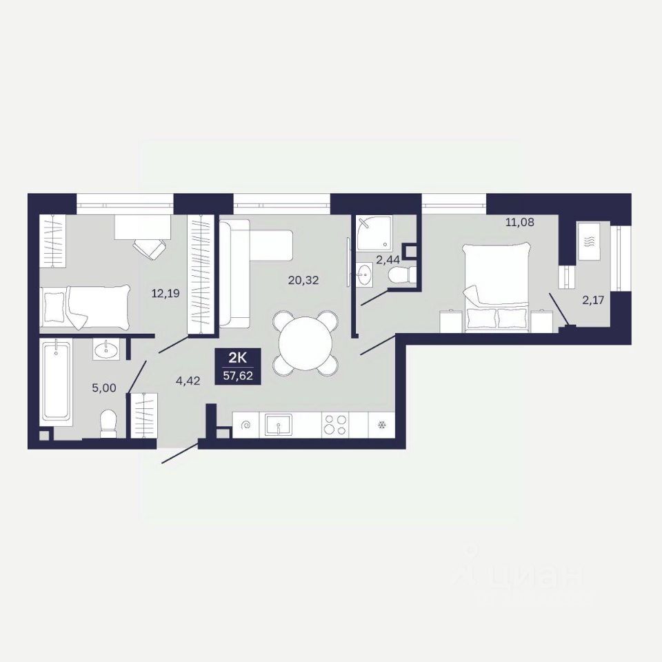 Общая площадь57,62 м²