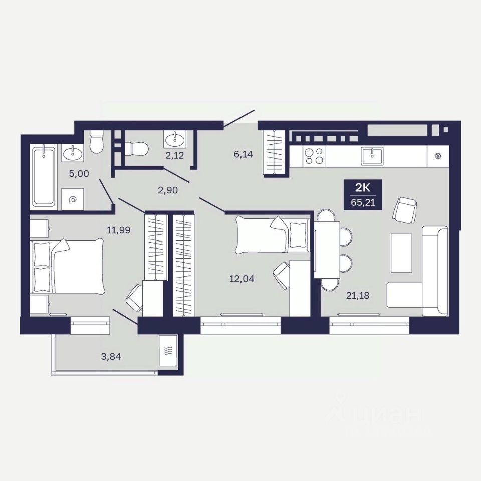 Продается 2-комн. квартира, 65,21 м²