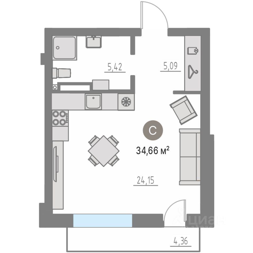 34 м²