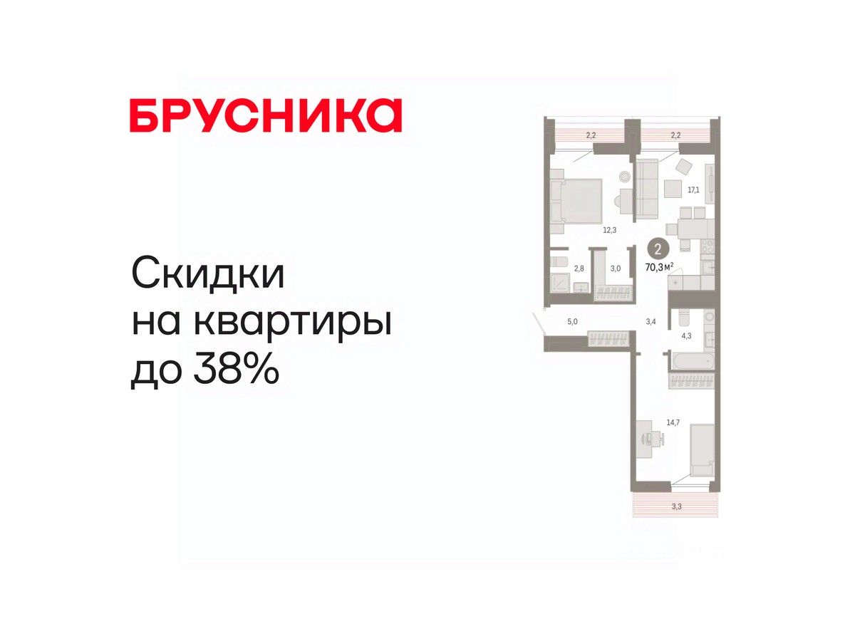 2-комн. квартира с предчистовой отделкой в ЖК "Республики 205" на 5 этаже. Общая площадь: 70.33 кв.м., жилая: 27 кв.м., площадь просторной кухни-гостиной: 17.1 кв.м. Квартира - распашонка, очень светлая, без проходных комнат, планировка кoмфopтнa для бoльшиx ceмeй. В квартире три балкона, два совмещенных санузла. Высота потолков 2.6 м.