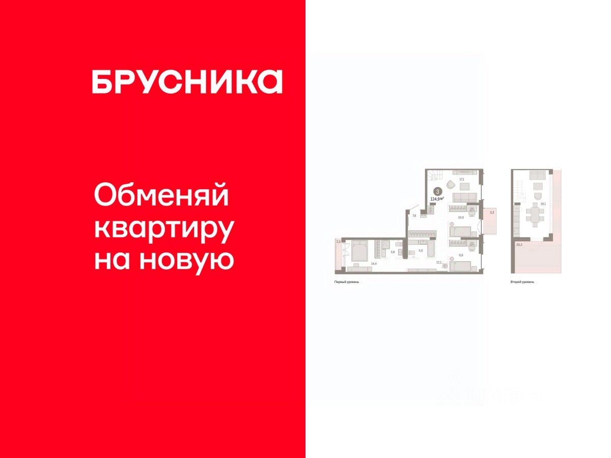 Трехкомнатная квартира с предчистовой отделкой в ЖК "Республики 205" на 7 этаже. Общая площадь: 124.94 кв.м. Высота потолков 2.7 м.