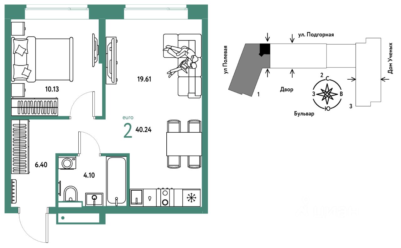 Продается 2комнатная квартира на 2 этаже от застройщика Страна Девелопмент. Площадь квартиры 40,24 кв. м.