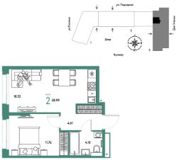 Продается 2комнатная квартира на 2 этаже от застройщика Страна Девелопмент. Площадь квартиры 38,99 кв. м.