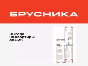 Квартира с кухней-гостиной и двумя спальнями в кварталах "На Минской". Особенности планировки: окна на две стороны, лоджия, разнесённые спальни, предчистовая отделка, мастер-спальня.