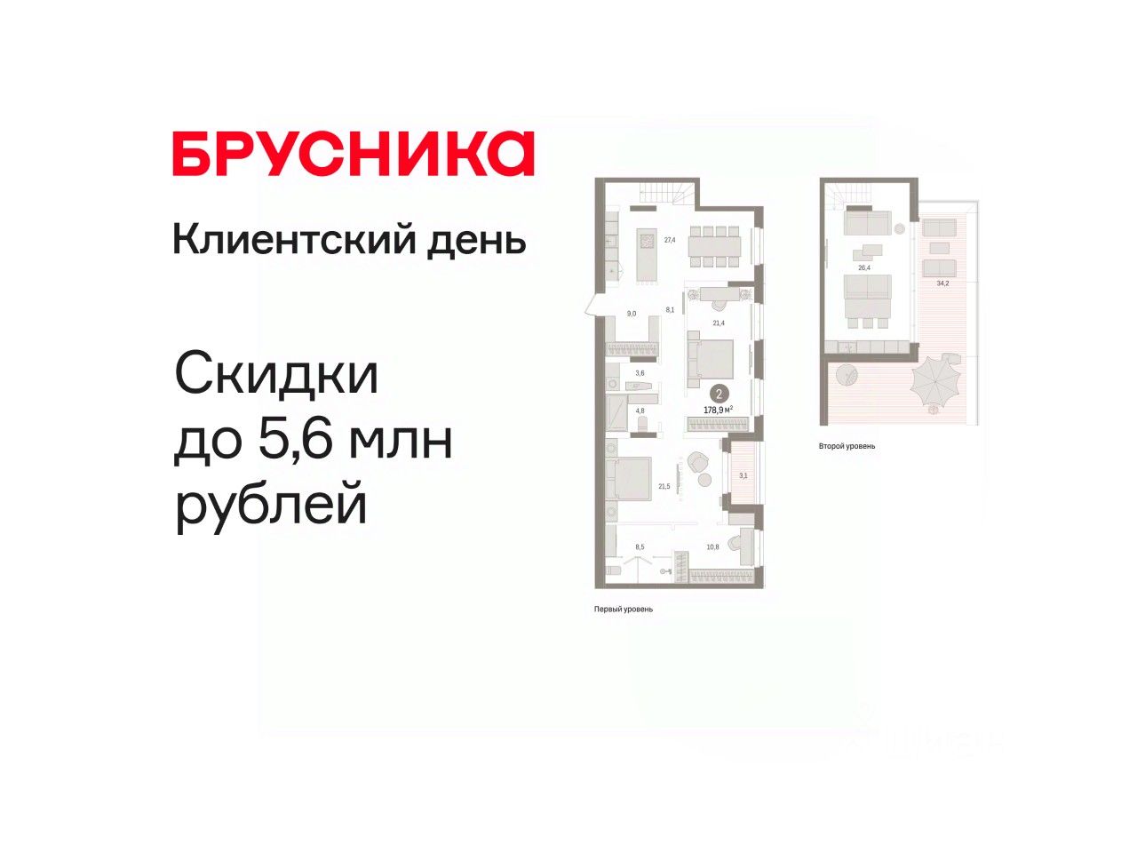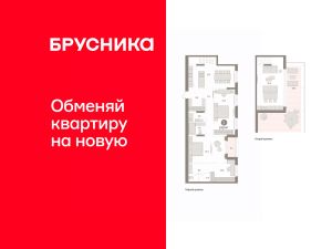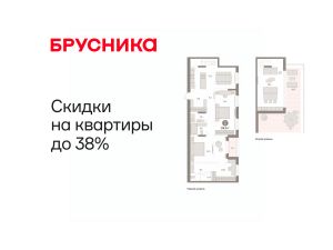 Двухуровневая квартира с кухней-гостиной и двумя спальнями в кварталах "На Минской". Особенности планировки: гардеробная, двухуровневая, мастер-спальня, окна в пол, окно в санузле, панорамное остекление, постирочная, предчистовая отделка, разнесённые спальни, терраса на крыше.