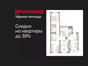 Квартира с кухней-гостиной и тремя спальнями в кварталах "На Минской". Особенности планировки: окна на две стороны, гардеробная, окна в пол, окно в санузле, панорамное остекление, разнесённые спальни, предчистовая отделка, мастер-спальня, балкон.