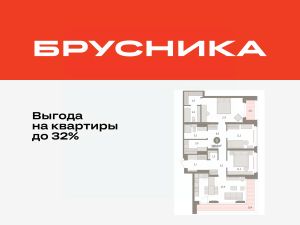 Квартира с кухней-гостиной и тремя спальнями в кварталах "На Минской". Особенности планировки: гардеробная, панорамное остекление, лоджия, предчистовая отделка, мастер-спальня, постирочная.