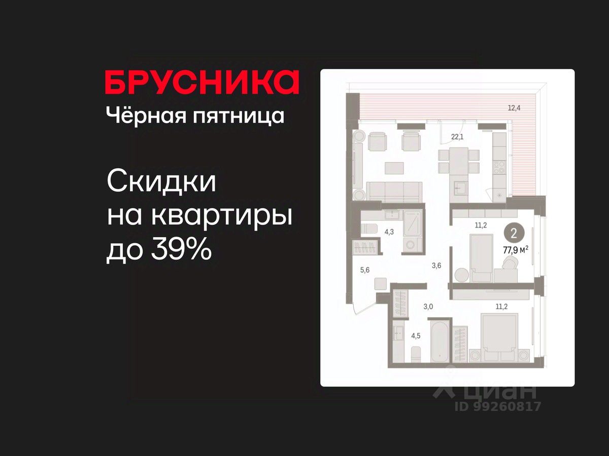 Просторная 2-комн. квартира с предчистовой отделкой в Кварталы "На Минской" на 12 этаже. Общая площадь: 77.86 кв.м., жилая: 22.4 кв.м., площадь просторной кухни-гостиной: 22.1 кв.м. Квартира угловая, идеально подойдет любителям тишины и панорамных видов. В квартире один балкон, два совмещенных санузла. Наличие в квартире террасы дает возможность для обустройства дополнительной площади. Высота потолков 2.7 м.