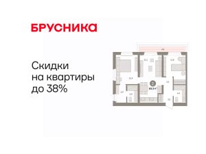 Квартира с кухней-гостиной и двумя спальнями в кварталах "На Минской". Особенности планировки: гардеробная, мастер-спальня, предчистовая отделка, разнесённые спальни, терраса на крыше.
