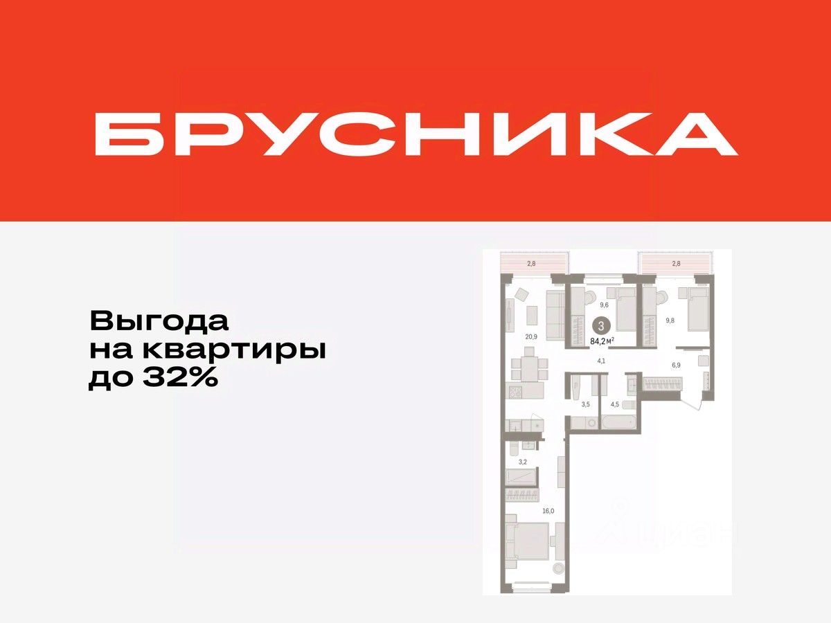 Квартира с кухней-гостиной и тремя спальнями в кварталах "На Минской". Особенности планировки: панорамное остекление, разнесённые спальни, предчистовая отделка, мастер-спальня, постирочная, балкон.
