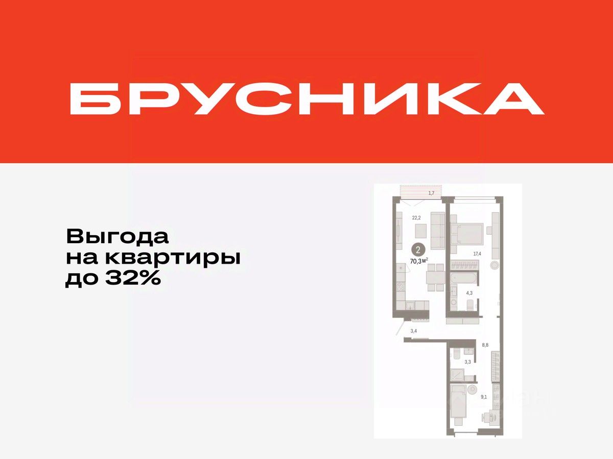 2-комн. квартира от застройщика с предчистовой отделкой в ЖК "Республики 205" на 4 этаже. Общая площадь: 70.25 кв.м., жилая: 26.5 кв.м., площадь просторной кухни-гостиной: 22.2 кв.м. Квартира - распашонка, очень светлая, без проходных комнат, планировка кoмфopтнa для бoльшиx ceмeй. В квартире один балкон, два совмещенных санузла. Высота потолков 2.7 м.