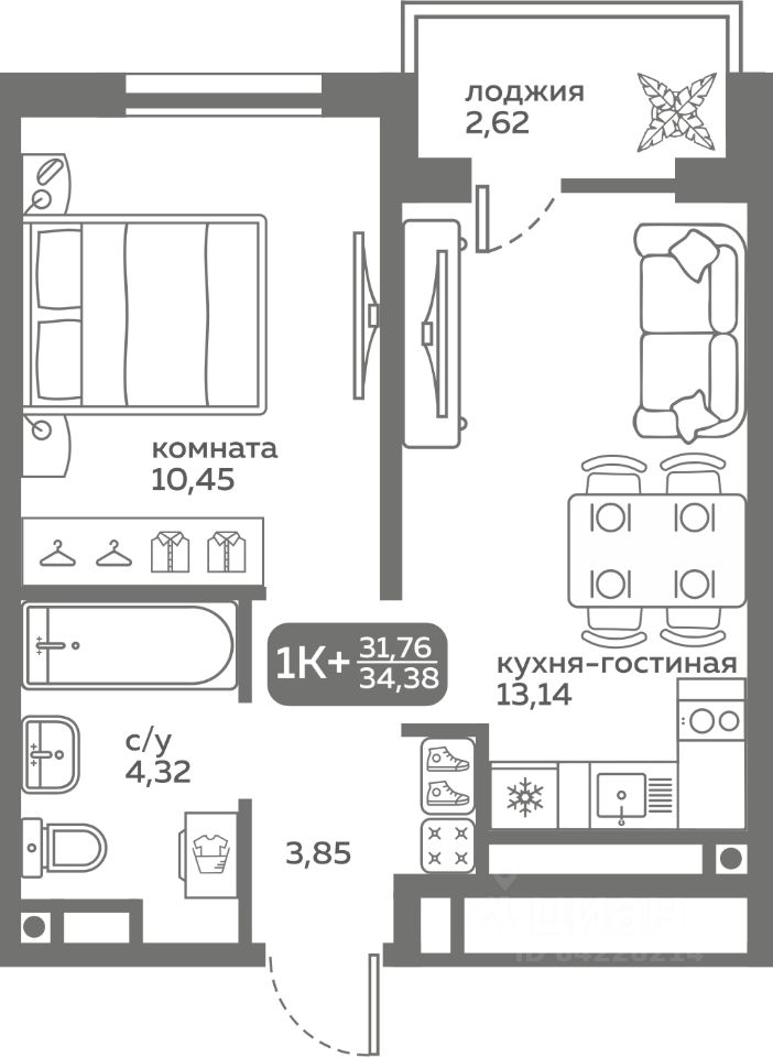 Прямая продажа от застройщика! Продается однокомнатная квартира в строящемся ЖК "Меридиан Слобода", срок сдачи: I-кв. 2027, общей площадью 31.76 м², на 4 этаже из 20. Площадь кухни — 13.14 м².