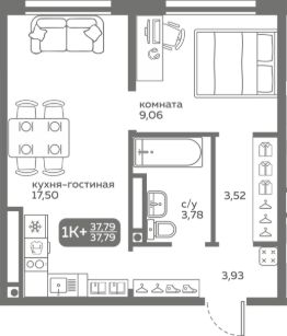 Прямая продажа от застройщика! Продается однокомнатная квартира в строящемся ЖК "Меридиан Слобода", срок сдачи: I-кв. 2027, общей площадью 37.79 м², на 17 этаже из 20. Площадь кухни — 17.5 м².