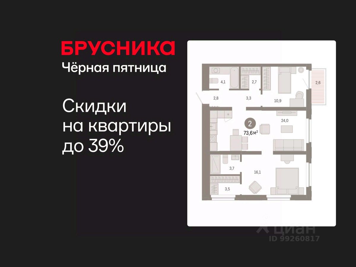 2-комн. квартира от застройщика с предчистовой отделкой в ЖК "Зарека" на 10 этаже. Общая площадь: 73.58 кв.м., жилая: 27 кв.м., площадь просторной кухни-гостиной: 24 кв.м. Угловая квартира, очень светлая, естественная вентиляция при открытии окон. В квартире один балкон, два совмещенных санузла. Высота потолков 2.7 м.