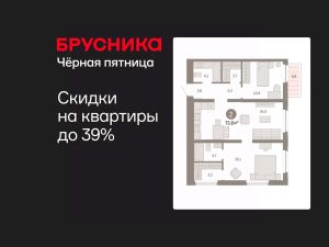 Квартира с кухней-гостиной и двумя спальнями в жилом районе "Зарека". Особенности планировки: гардеробная, разнесённые спальни, предчистовая отделка, мастер-спальня, балкон.
